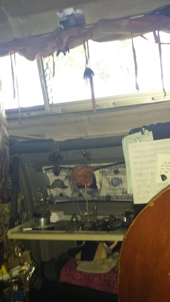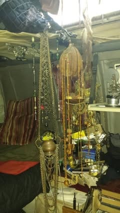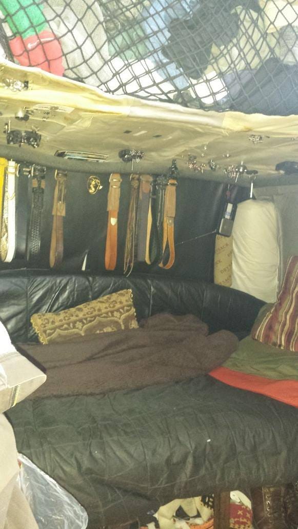 It was incredible. He bought the van at auction for $2000 and bought the bubble top for $45. Everything else, including the statues, sculptures, belts (yes, belts), and shelves he made by hand. It was as custom a job as I have ever seen. A tiny sanctuary of which he was rightfully proud.
