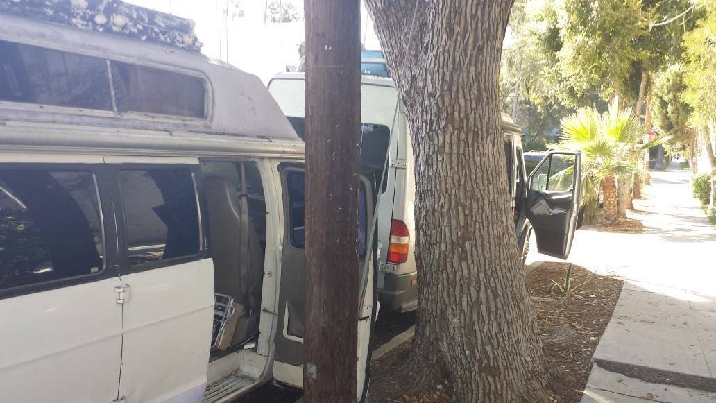 So the best part of my day already happened. God, I love New York, er, I mean Los Angeles. . .I returned from my walk to find a slightly straggly man looking over my van. I approached with caution. Was he a neighbor snooping around to see if it was occupied? Was he a casual admirer, coming to gawk and beg for war stories? Or was he. . .yes. . .it was the guy who slept in the van behind me last night coming to greet his temporary neighbor.